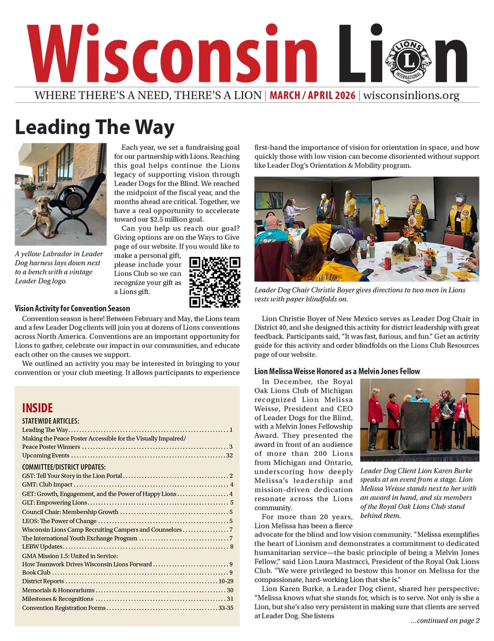 The Wisconsin Lion is published 6 times a year for the 17,500 Lions of Wisconsin as a way to tell all of our readers what has been happening in our individual districts throughout the year. Lions are making a difference in our home towns and around the world. Whether it’s screening vision, building a ramp for a wheelchair bound neighbor or helping to feed the hungry, Lions are there to make life better for those in need.